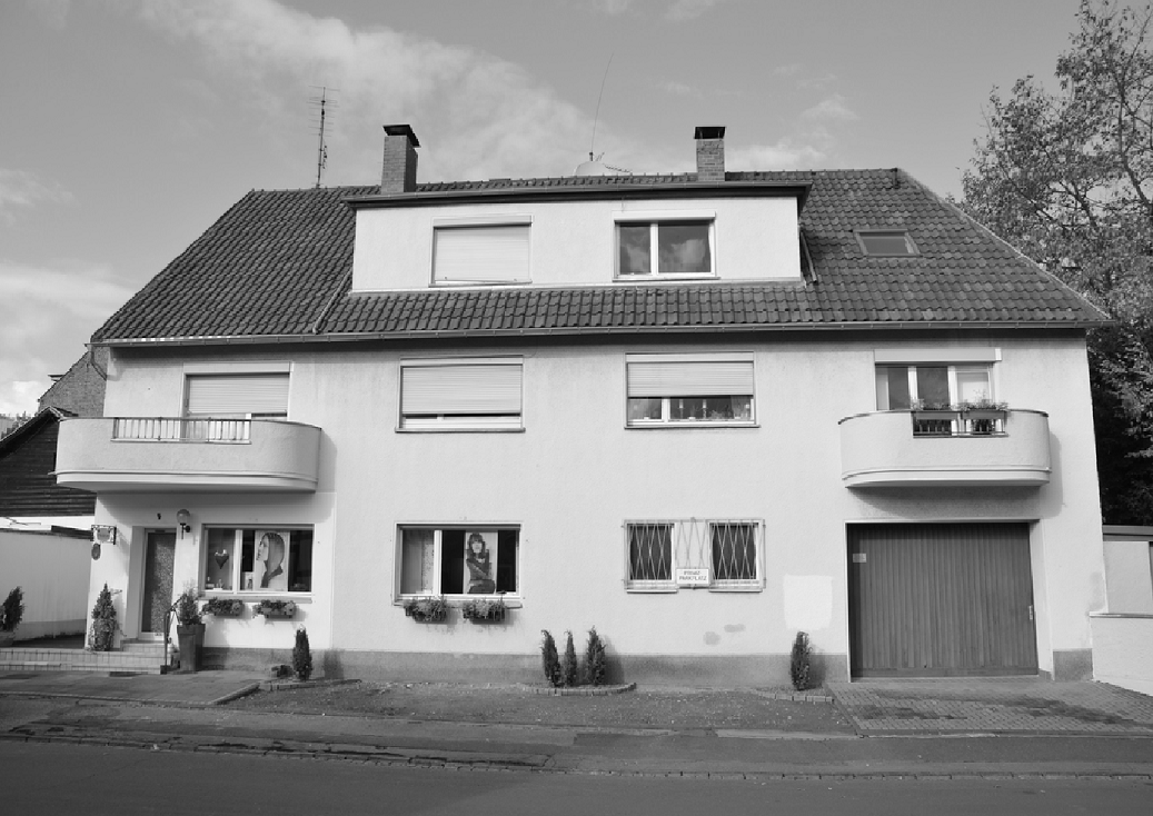 Bei der in Bad Godesberg Lannesdorf gelegenen Immobilie handelt es sich um ein 3-stöckiges, freistehendes Wohn- und Geschäftshaus, das in den Jahren 1958/59 erbaut und in den letzten Jahren teilweise modernisiert worden ist. Das Haus liegt an einer ruhigen Wohnstraße, die überwiegend dem Anwohnerverkehr dient. Es stehen drei Wohneinheiten und eine Gewerbeeinheit mit insgesamt ca. 323 m² Gesamtnutzfläche zur Verfügung. Das Grundstück mit ca. 300 m² umfasst den kompletten Vorplatz bis zur Hoverstraße sowie einen mit rotem Steinzeug ausgelegten Hinterhof, der zur Wäschetrocknung genutzt wird. Die 4-Zimmerwohnung im Erdgeschoss mit ca. 73 m² Fläche wird derzeit als Friseur-Salon genutzt, kann aber ohne viel Aufwand zu Wohnzwecken umgenutzt werden. Die beiden 3-Zimmerwohnungen mit Balkon im 1. OG sind ca. 73 und ca. 77 m² groß und mit Holzdielenboden bzw. großen hellen Bodenfliesen ausgelegt. Die 4-Zimmerwohnung mit Dachboden im 2. OG ist unsaniert, unvermietet, kann in in zwei Wohnungen aufgeteilt werden und bietet die Möglichkeit über einen DG-Ausbau zusätzliche Wohnfläche zu schaffen. Die Fenster der Wohnungen sind mit einfachverglasten Holzfenstern zur Straßenseite und teilweise doppeltverglasten Kunststoff-Fenstern zur Hofseite ausgestattet. Zur Immobilie gehört eine Doppelgarage, daneben ist vor dem Haus Platz für zwei PKW-Stellplätze.